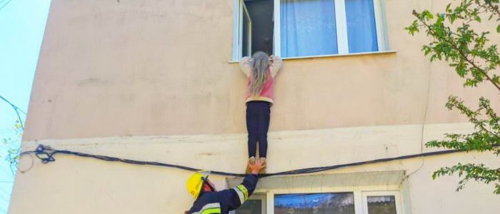 Сегодня около 12 дня в Килии прохожие заметили висевшего за окном ребенка. Они вызвали работников ГСЧС, увидевших 9-летнюю девочку, которая едва держалась за подоконник на втором этаже, а ногами стояла на свертке интернет кабелей. С помощью выдвижной стремянки спасатели сняли девочку с высоты.