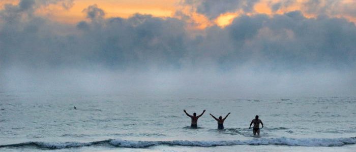Из-за этого на поверхности образовался густой пар, как-будто море “закипает”. Это природное явление предвещает замерзание моря. Если такая низкая температура продержится еще несколько дней, то море начнет покрываться первым тонким слоем льда.