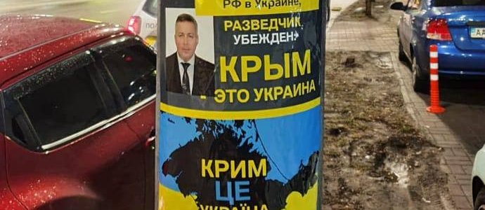 Листовки и плакаты с лицами сотрудников посольства РФ в Украине появились в Киеве в ночь с 15 на 16 марта возле мест проживания и работы российских дипломатов.