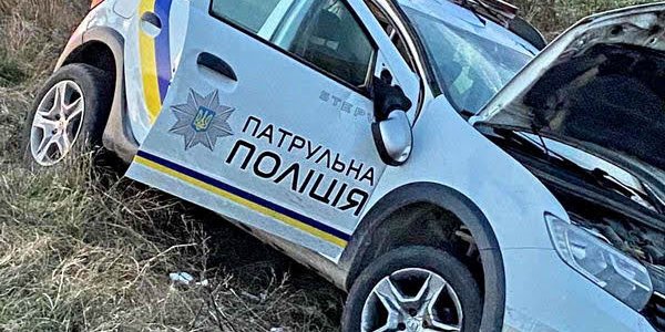 На трассе Одесса — Мелитополь — Новоазовск около 16 часов произошло столкновение автомобиля Mitsubishi с полицейским автомобилем Renault Sandero.