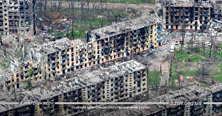 Полк “Азов”, який захищає Маріуполь і зараз тримає оборону “Азовсталі” оприлюднив нові шокуючи кадри з дрона колись квітучого міста. Згоріли та зруйновані дома – це те, що принесла з собою росія в Україну. Окупанти знищили Маріуполь, перетворив його на місто-привід.