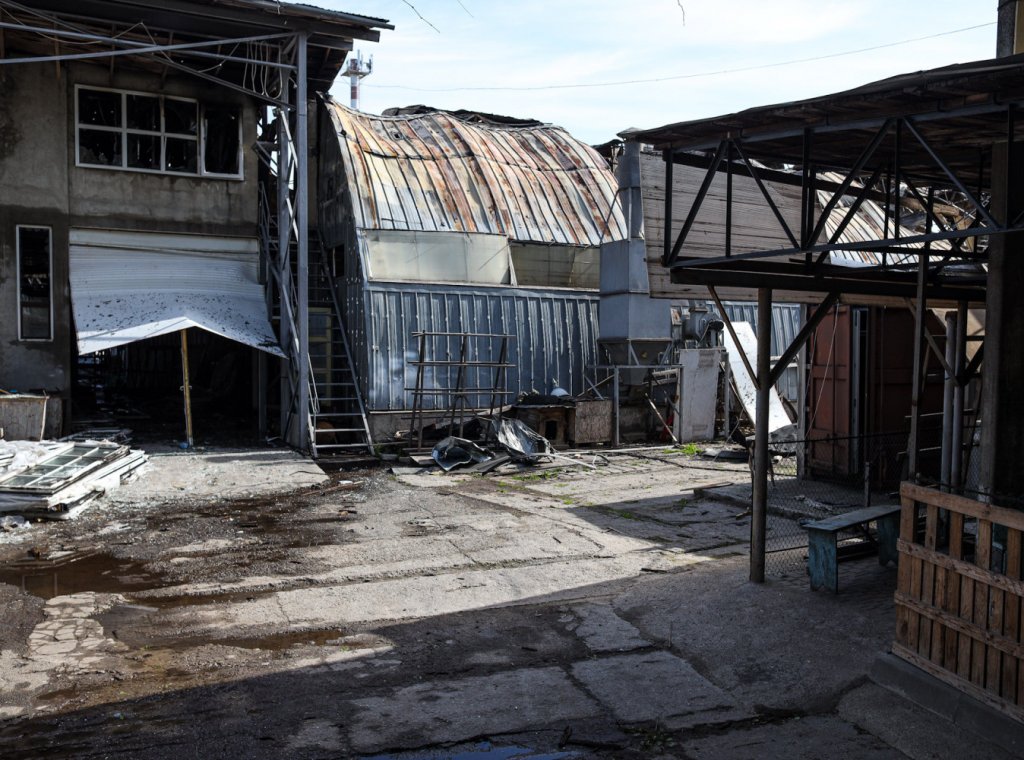 Как сообщает наш корреспондент, побывавший утром на месте военного преступления российских оккупантов, взрыв практически уничтожил мебельный цех. Его территория оцеплена, туда никого не пускают. Вокруг разбросан обгоревший профнастил, сорванный взрывной волной с крыши здания.