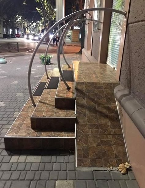 Пандус для "камикадзе", которым невозможно воспользоваться, расположен на углу улиц Ришельевской и Успенской.