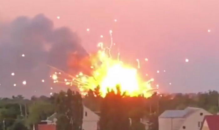 Как сообщают местные жители в Новой Каховке, сегодня утром были слышны взрывы с детонацией боекомплекта. По данным местных телеграмм-каналов, ВСУ поразили ракетами HIMARS по очередному составу рашистов.