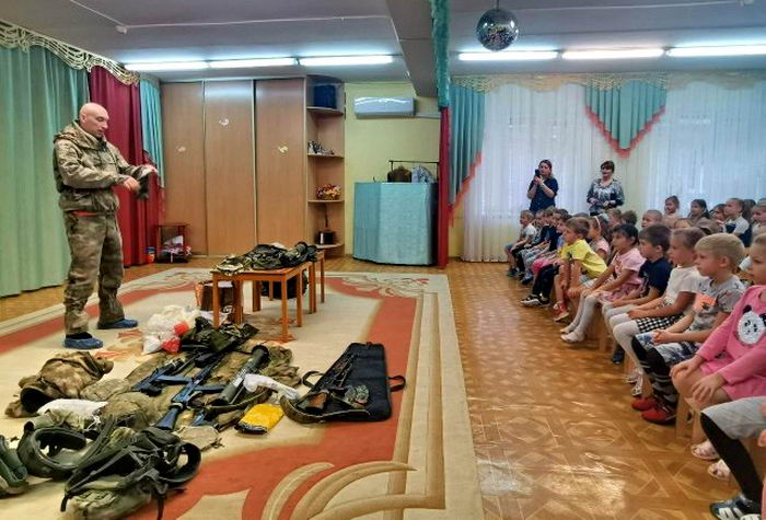 В российском подмосковном городе Королев местные власти организовали “патриотические уроки” в детских садах с оружием. Для этого пригласили участника военных действий Павла Фирсова с полным набором огнестрельного оружия. Детям показали и расскзали как пользоваться автоматом, гранатометом и огнеметом. Также Фирсов рассказывал детям о победах над “врагами”. Примечательно, что педагоги детского сада с радостью поучаствовали в пропаганде милитаризации детства и войны.