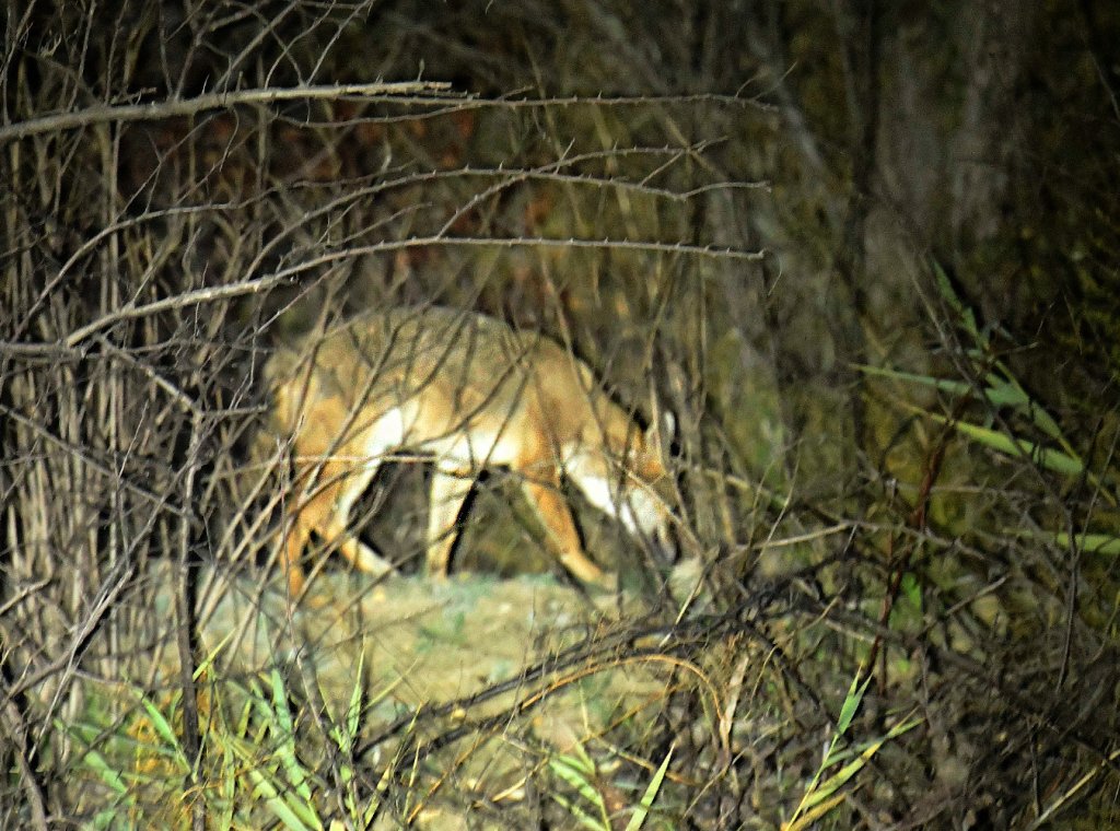 В начале ноября руководитель научно-исследовательского отдела парка, зоолог Игорь Гержик в поисках хищника провел несколько дней на берегу лимана. Ему удалось выследить зверя, понаблюдать и сделать несколько ночных кадров.