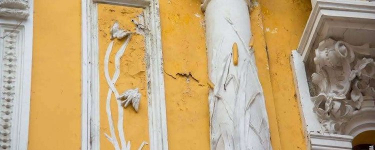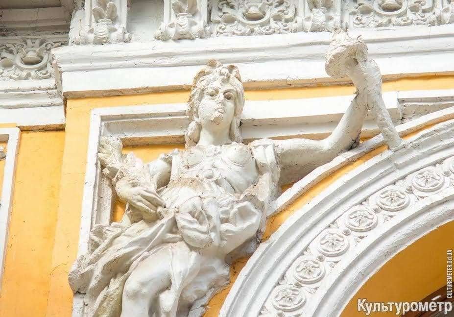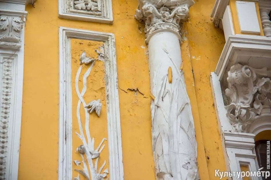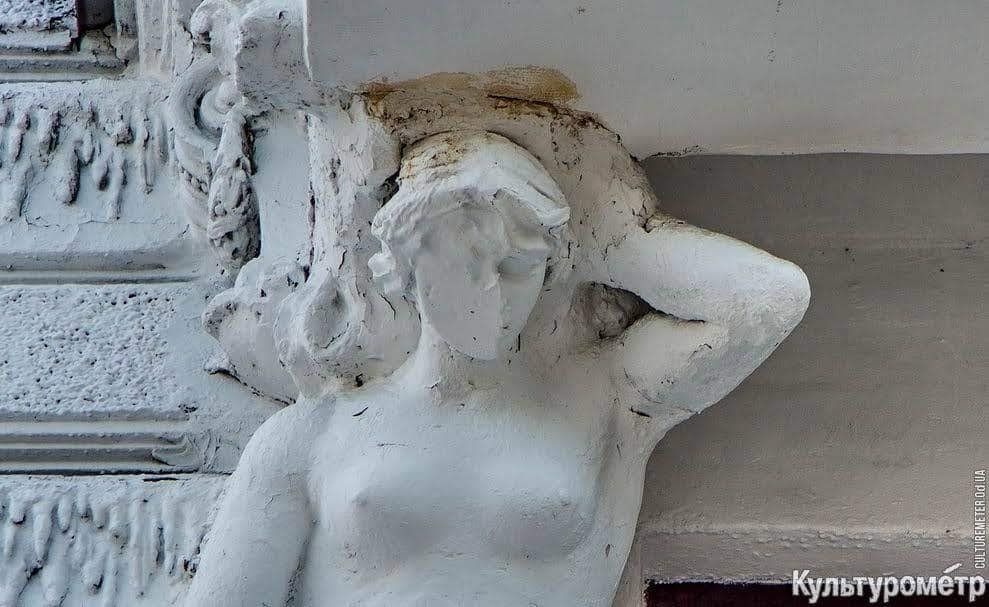 Как сообщают СМИ, подрядчик работ остался неизвестным, как и сама смета работ. Зато хорошо видно качество их «реставрации». Так на угловом фасаде, который видно с Дерибасовской и Преображенской у кариатиды практически полностью отсутствует лицо — его просто забыли сделать. К тому же скульптуре на голову с верхнего балкона течет дождевая вода, отчего покрашенная свежей белой краской голова стала грязно-желтой.