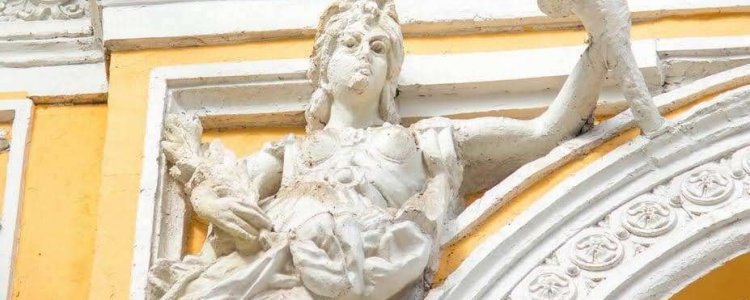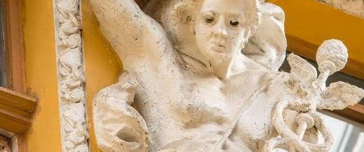 Наиболее адекватно выглядит скульптура на центральном внутреннем балконе, но есть вопросы к размеру бюста скульптуры, который никак не тянет на натуральный размер.
