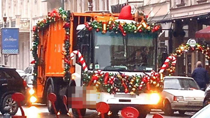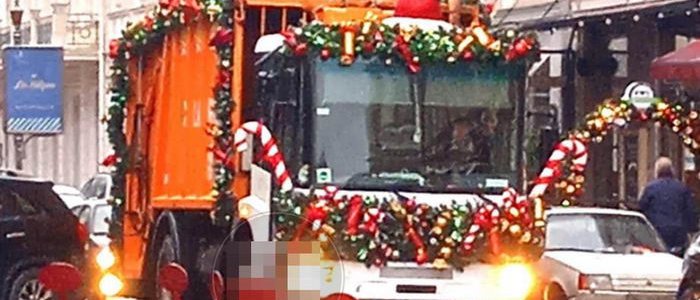 На одесских улицах перед новогодними праздниками появился необычный мусоровоз. Его украсили зелеными ветками сосны и елочными игрушками в виде больших конфет и леденцов. При чем украшена не только кабина, но и весь кузов. Праздничный новогодний мусоровоз появляется в разных районах Одессы и сразу же привлекает к себе внимание, а также поднимает настроение.