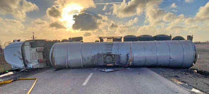 Поліцейські встановлюють повні обставини ДТП та забезпечують безпеку дорожнього руху. Рух транспорту перекрито доки не підіймуть бензовоз.