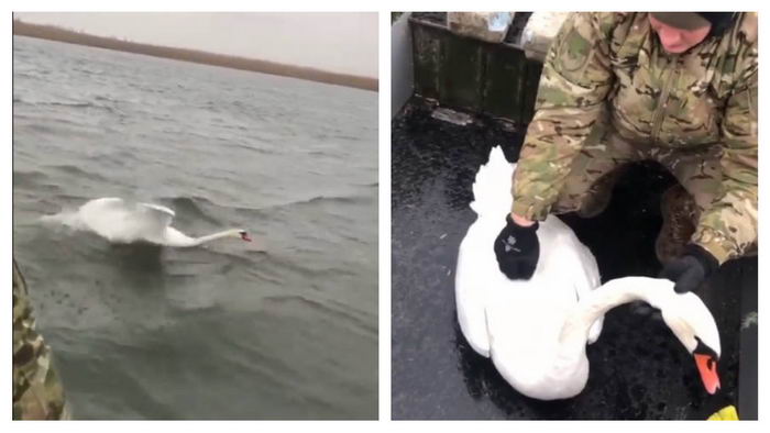Патрульная полиция Одесской области обнародовала видео спасательной операции по освобождению лебедя из ловушки. Сообщается, что во время патрулирования реки Турунчук, патрульный Сергей Морозов заметил лебедя, который не мог взлететь, потому что запутался в рыбацких сетках.