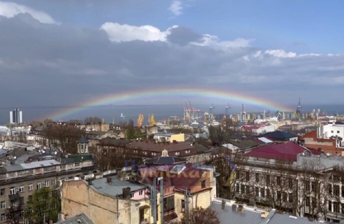 Одесситы не скупясь делятся в соцсетях и телеграм-каналах фотографиями и видеороликами с радугой, которая раскинулась над самым центром Одессы, украсив собой также порт и весь Одесский залив.