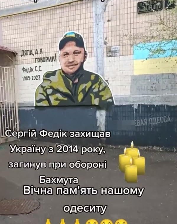 В Одессе в одном из дворов на проспекте Академика Глушко нарисовали мурал, посвященный памяти погибшего на фронте одессита Сергея Федика. Сообщается, что он был участником фанатского движения ультрас одесского “Черноморца”. Сергей защищал Украину во время российского нападения в 2014 году. Во время полномасштабного вторжения снова присоединился к рядам ВСУ. Прошел бои в Александровке Николаевской области и вблизи Давыдова Брода на Херсонщине. Погиб при обороне Бахмута.