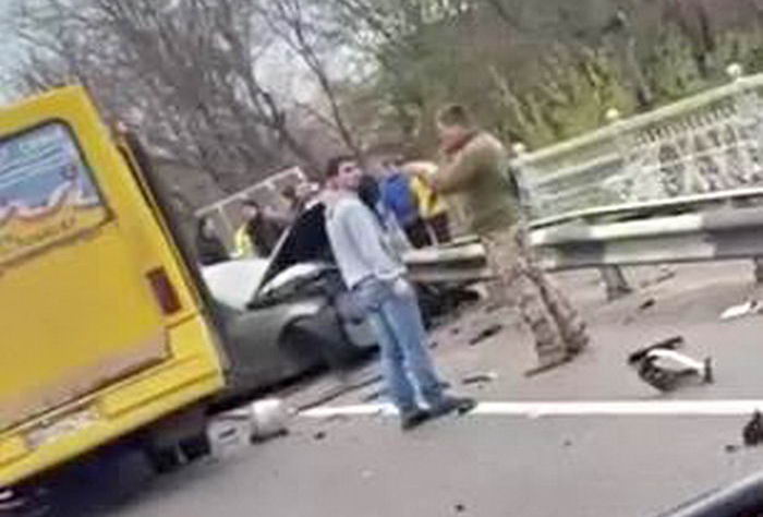 Вечером по улице Грушевского на мосту над железнодорожной дорогой столкнулись легковой автомобиль Mercedes и маршрутный автобус БАЗ. Как сообщили в патрульной полиции, водитель Mercedes не справился с управлением, выехал на встречную полосу и врезался в автобус. В больницу доставили водителя и пассажира легковушки и водителя автобуса.