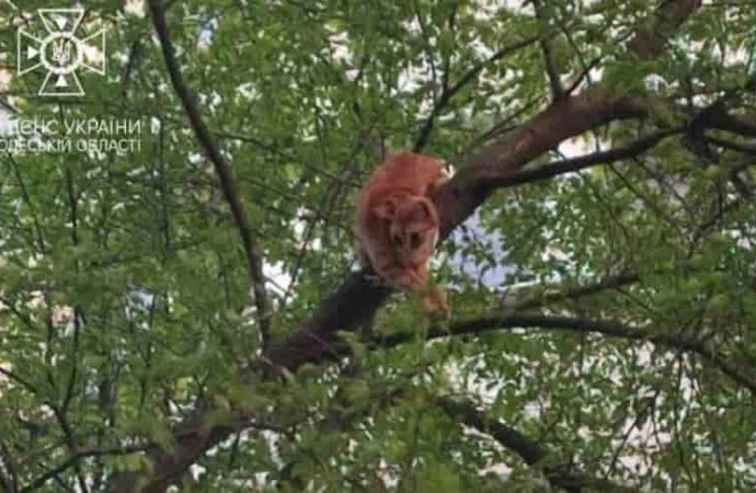 Забавный инцидент произошел на днях в Киевском районе Одессы: там спасатели сняли с дерева застрявшего домашнего кота, а также его хозяйку.