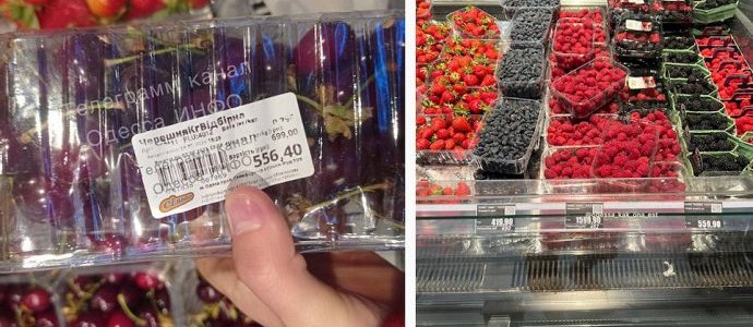 В конце мая 2023 года на прилавках супермаркетов и рынках Одессы появилась в продаже черешня и малина. Цены сразу поразили одесситов: если за черешню просят около 700 грн за 1 кг, то цена за малину достигает 1600 грн. Об этом сообщили читатели в одесских телеграмм-каналах.