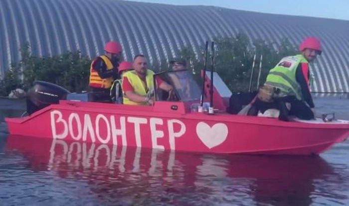 Группа волонтеров на розовом катере рискуя собственными жизнями вот уже три дня занимаются эвакуацией мирных жителе из затопленных водой Олешек. Российские оккупанты не проводят эвакуация населения на подконтрольной им территории и вообще никак не помогают. Более того, по сообщениям из оккупации – не дают выехать из затопленных населенных пунктов тем, у кого нет российского паспорта.