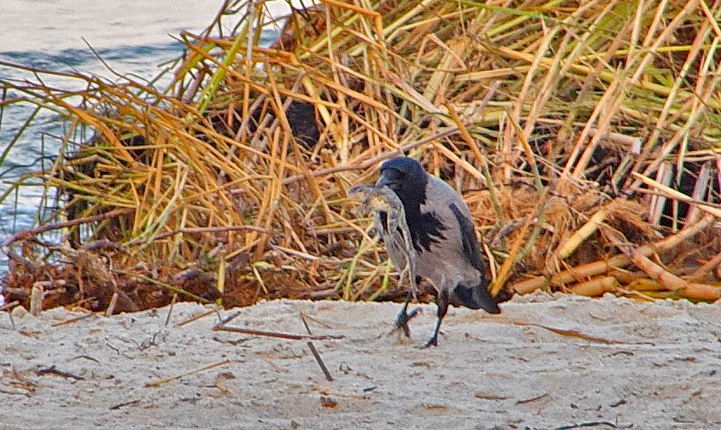 На одесских пляжах вот уже как неделю по вечерам можно услышать кваканье лягушек из Херсонщины, которые приплыли на дрейфующих досках и островках мусора. Однако с каждым днем кваканье становилось все тише и лягушки куда-то исчезали. Одесский фотограф Лолита Клочкова зафиксировала сцену, как местные вороны устроили охоту на лягушек.