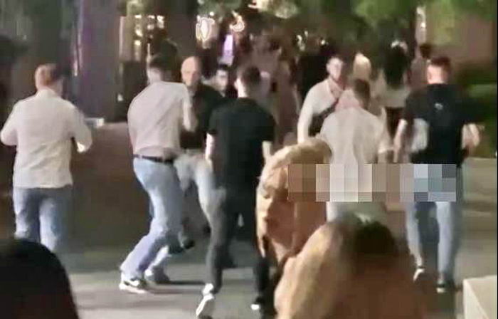 Здоровые и крепкие мужики меряются силой и портят здоровье в уличных конфликтах, вместо того, чтобы пойти защищать страну на фронте. Отметим, что на кадрах не видно полиции, которая должна пресекать подобные происшествия.