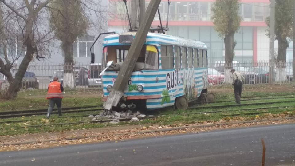 В районе Школьного аэродрома, неподалеку от конечной остановки с рельсов сошел трамвай 13 маршрута. По инерции вагон снес опору контактной сети, сообщает журналист Игорь Хмурый.