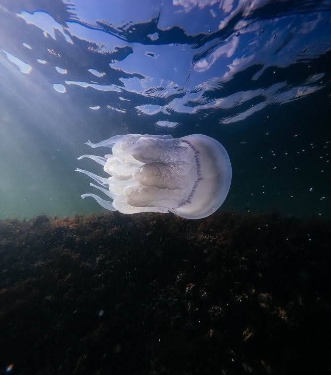 Одесский фотограф Иван Страхов запечатлел сезонных гостей одесского побережья – гигантских медух корнеротов. Каждый год в августе они мигрируют на север Черного моря в поисках пищи. В этом году миграция чуть задержалась и медузы появились только в конце августа. Возможно, что это связано с терактом рашистов на Каховской ГЭС и последующим опреснением и загрязнением моря.
