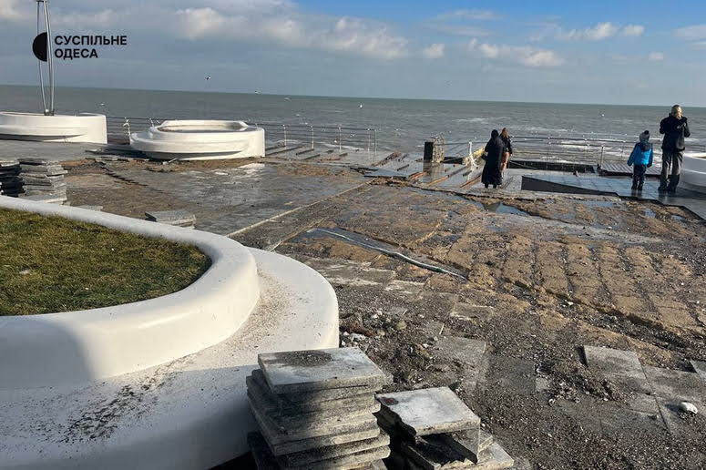 Минувшей ночью в Одессе снова штормило море. На этот раз ветер был в сторону берега и большие волны обрушились на пляжи. На Ланжероне сильно пострадала набережная – деревянный настил практически везде сорвало и частично унесло в море. Также камни и вода разбили плиточное покрытие, которое находится за деревянным настилом. Отметим, что после штормов плитка почти всегда была целая, но в этот раз уже не выдержала.