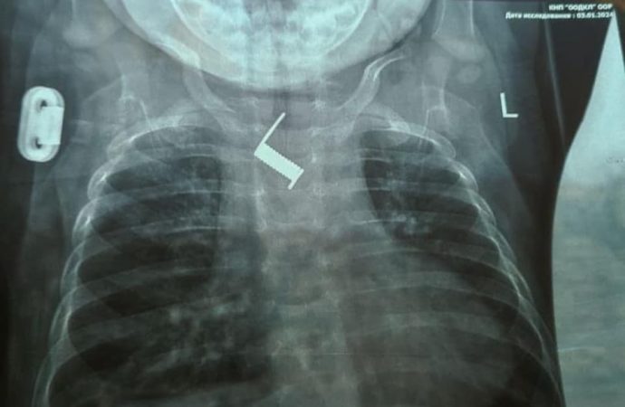 В одесскую больницу попал 6-месячный ребенок, в пищеводе которого обнаружили постороннее тело — деталь от шпильки для волос. Но медикам удалось ее изъять. Правда, до этого малыша две недели лечили от воспаления легких.