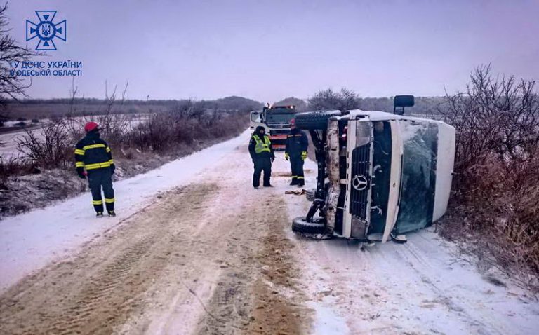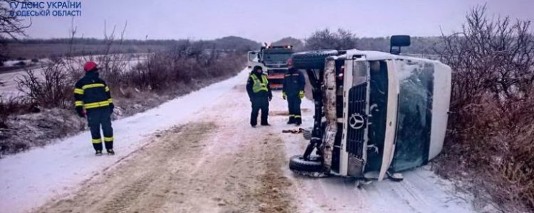 На Одесскую область надвигается зимняя непогода – снег, ветер и гололедица. Как сообщили в ГСЧС, уже есть первое ДТП из-за скользкой дороги. В селе Боковое Подольского района водитель микроавтобуса волонтеров из благотворительного фонда The Howard G. Buffett Foundation (HGBF) потерял управление.