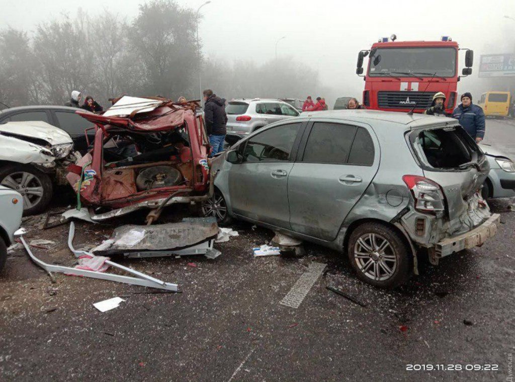 Как сообщает патрульная полиция, в одном из ДТП столкнулись 11 автомобилей. За медицинской помощью обратились два человека. Движение транспорта на участке от Клеверного моста до въезда в Одессу (450-456 км автодороги Одесса-Киев) все еще затруднено.