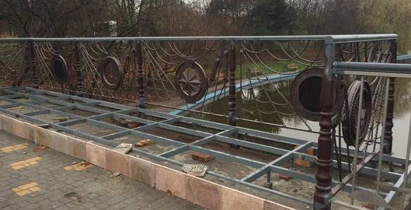Мост между прудами, размещенный в парке Победы в Одессе, начали капитально ремонтировать.