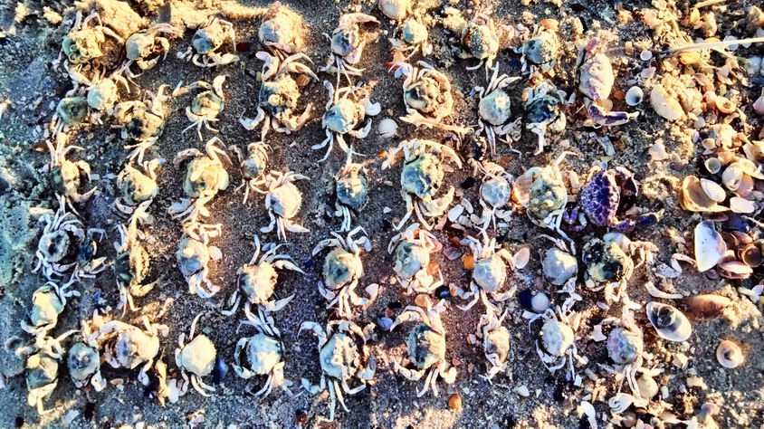 В Нацпарке “Тузловские лиманы” на пляжах обнаружили сотни тысяч мертвых крабов. Как сообщил эколог Иван Русев, на юге Одесчины наблюдался мощный северный ветер, отогнавший воду с берегов Черного моря на несколько метров. Этот процесс запустил обмен теплой воды на холодную из глубины.