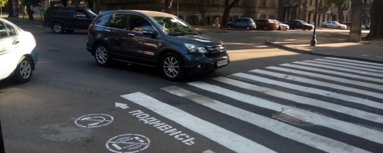Перечеркнутые наушники и мобильный телефон с надписью «подивись»: огромные предупредительные знаки появились перед пешеходными переходами на улице Маразлиевская около Зеленного театра.