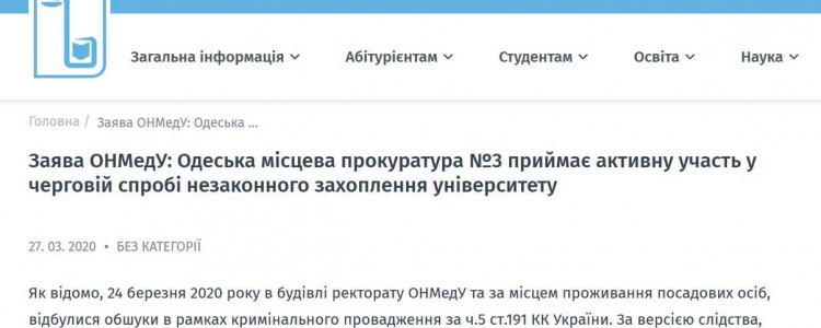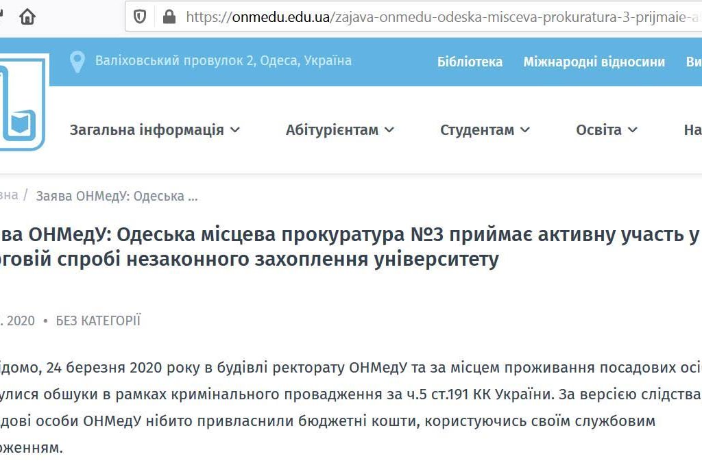 24 марта в одесском Медине и в доме экс-ректора Запорожана прошли обыски по подозрению в присвоении должностными лицами имущества в особо крупных размерах.