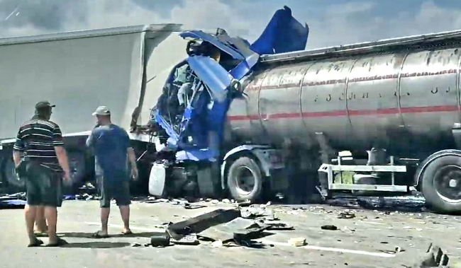 Предварительно установлено, что один из грузовиков остановился вдоль обочины, когда в него на скорости въехала грузовик с цистерной.