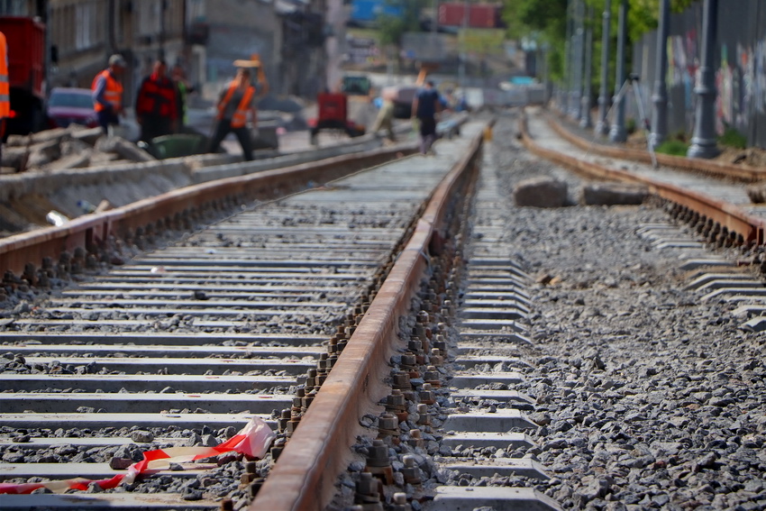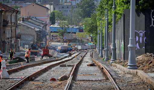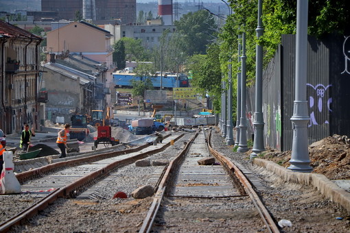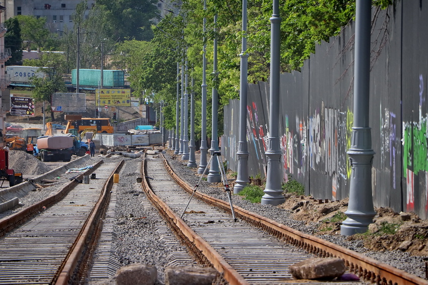 Мы продолжаем регулярные фотообзоры важных инфраструктурных ремонтов в Одессе. На спуске Маринеско уже уложены новые трамвайные пути. По состоянию на конец нынешней недели капитальный ремонт или реконструкция (кому как удобнее называть) спуска Маринеско, начатая минувшей осенью, продолжается. Для сравнения - как выглядел этот ремонт месяц назад, 25 апреля. Хотя заявленные сроки окончания ремонта и запуска трамвая, намеченные изначально на конец марта, сорваны и превышены уже более чем на два месяца, конец уже близок. Уже полностью уложены новые пути трамвая, установлены опоры контактной сети. Для того, чтобы запустить трамвай, осталось еще немного выровнять новые рельсы, засыпать их еще одним слоем щебня и смонтировать контактную сеть. После этого трамвай уже сможет ходить, а работы по обустройству новой проезжей части - продолжаться. На самой проезжей части все еще готовят новое основание для укладки первых слоев асфальта. Уже началось благоустройство тротуаров. На них укладывают плитку, обустраивают водостоки и ставят ограждения - в частности, на небольшом квартале между Ольгиевской и Валиховским переулком. Ниже по спуску также укладывают плитку на тротуарах.\ Ремонтные работы на спуске Маринеско – один из этапов реконструкции трамвайной инфраструктуры трассы магистрального трамвайного маршрута "Север – Юг". Заметим, что реконструкция носит комплексный характер – меняют не только трамвайные пути (их тут последний раз меняли в 1988 – 90 годах на Софиевской и в конце 1970-х на спуске Маринеско) и дорожное полотно, но и все подземные коммуникации – канализацию, водопровод и другие инженерные сети. Согласно тендеру, реконструкция спуска Маринеско обходится городскому бюджету 72 миллиона гривен, работы выполняет компания "Ростдорстрой".