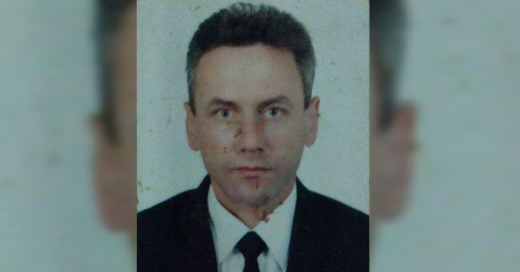 На вид пропавшему 55-60 лет, стройный, волосы светлые с проседью, короткие, на затылке лысина, горбатится, передние нижние зубы отсутствуют.