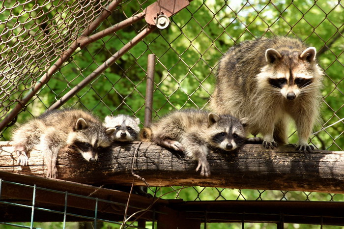 Раньше у пары енотов-полоскунов родились детёныши. На свет появились четыре малыша, которые сейчас всё время находятся рядом с мамой. Совсем недавно самка начала выводить своих детей в общий вольер, поэтому теперь посетители зоопарка могут понаблюдать за тем, как подрастают малыши.