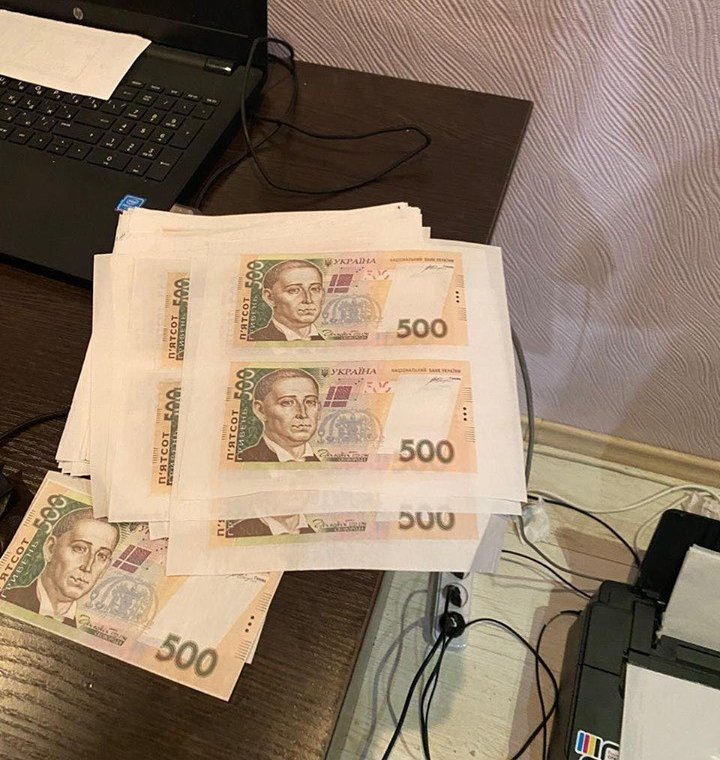 Правоохранители провели обыск у него дома. Они нашли оборудование для изготовления банкнот и заготовки номиналом 200 и 500 гривен.