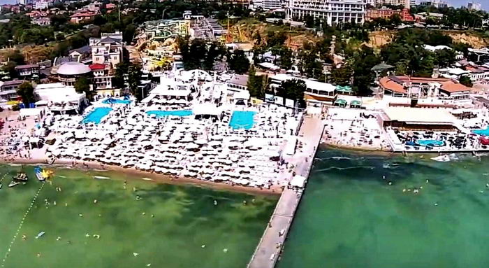 Закрытый забором пляж в Отраде владельцев канатной дороги. В прокуратуре напомнили, что капитальные сооружения, деревянные дорожки, топчаны и навесы не должны находится в 30-ти процентной бесплатной зоне арендованного пляжа. Эксплуатация пляжей без Паспортов и отсутствие пятиметрового свободного прохода вдоль воды для одесситов и гостей города запрещено.