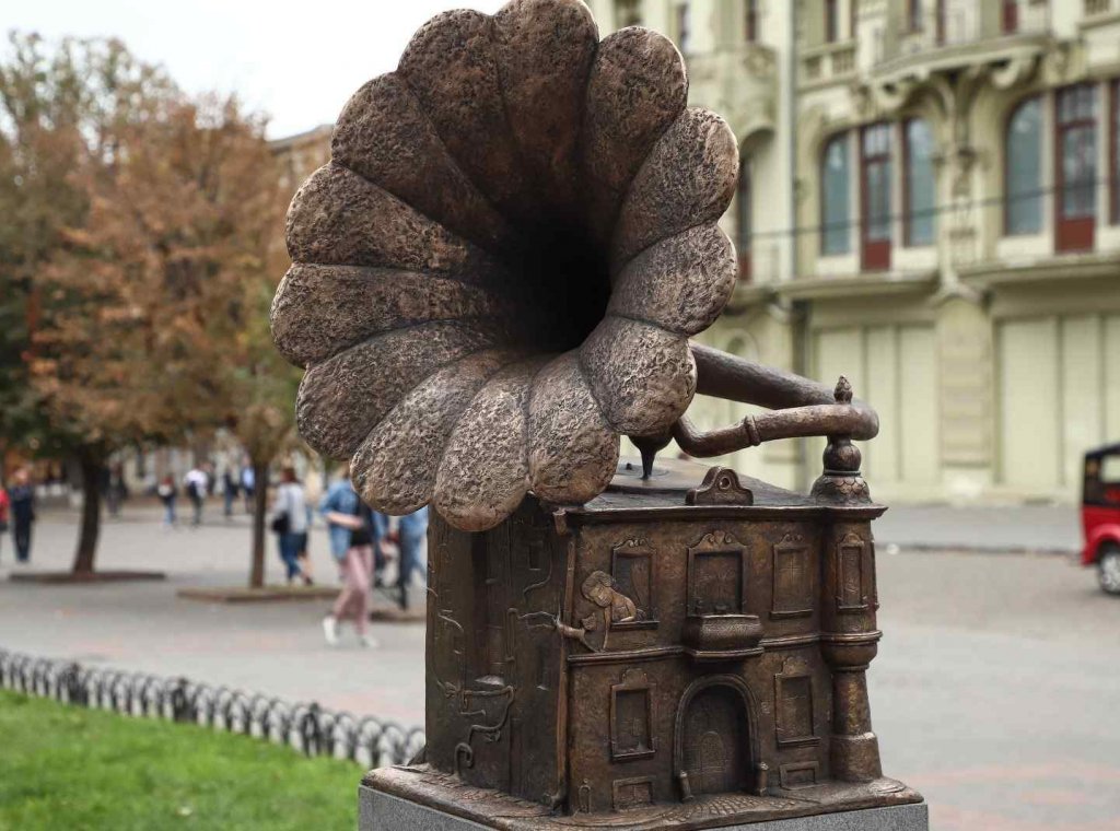 Инициатором установки и автором идеи, как отметили в мэрии, стал бизнесмен и меценат Андрей Левченко. Воплотил ее в жизнь скульптор Виктор Тиблевич. Скульптура представляет бронзовый старинный граммофон. Стороны основания граммофона — это фасады одесских домов.