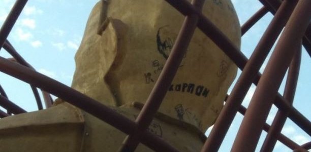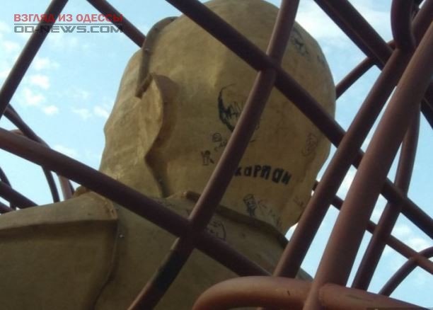 Отметим, что неизвестные приложили уже к скульптурной композиции свою руку и она "украшена" различного рода надписями и рисунками.