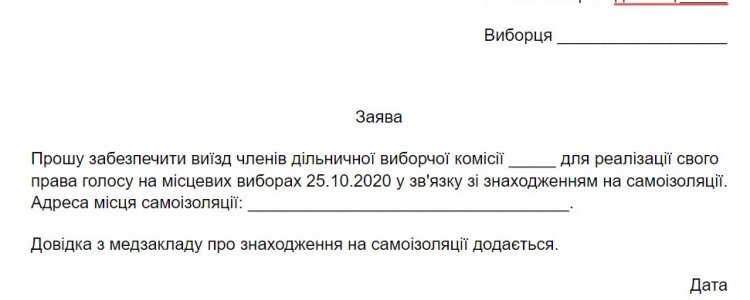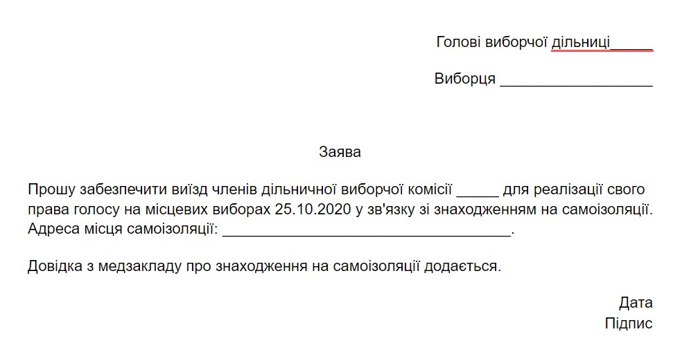 Получить справку о состоянии здоровья: это может быть форма 027/о или выписка из Реестра медицинских записей. Для этого надо обратиться к своему семейному врачу. Написать заявление на имя председателя своего избирательного участка. Узнать номер участка можно в кабинете избирателя на сайте государственного реестра избирателей. Заявление пишется в свободной форме, можете использовать этот шаблон, его нам подсказали на одном из избирательных участков перед первым туром выборов. Только не забудьте поменять дату на 15.11.2020.
