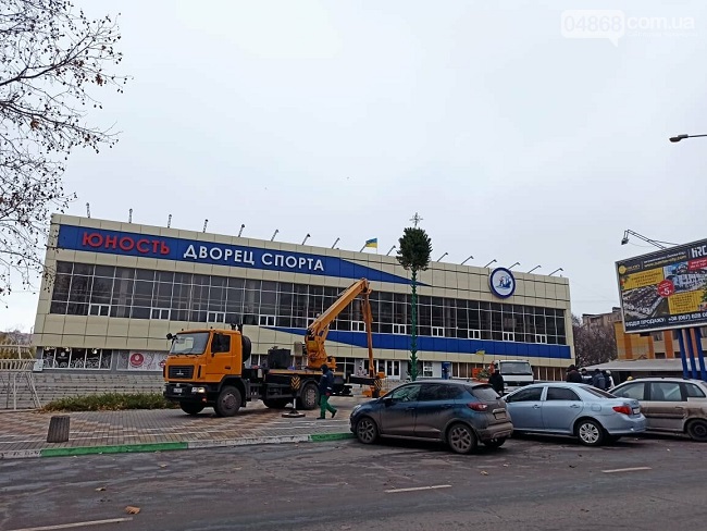 В Ильичёвске (Черноморске) приступили к установке главной новогодней ёлки города у дворца спорта «Юность».