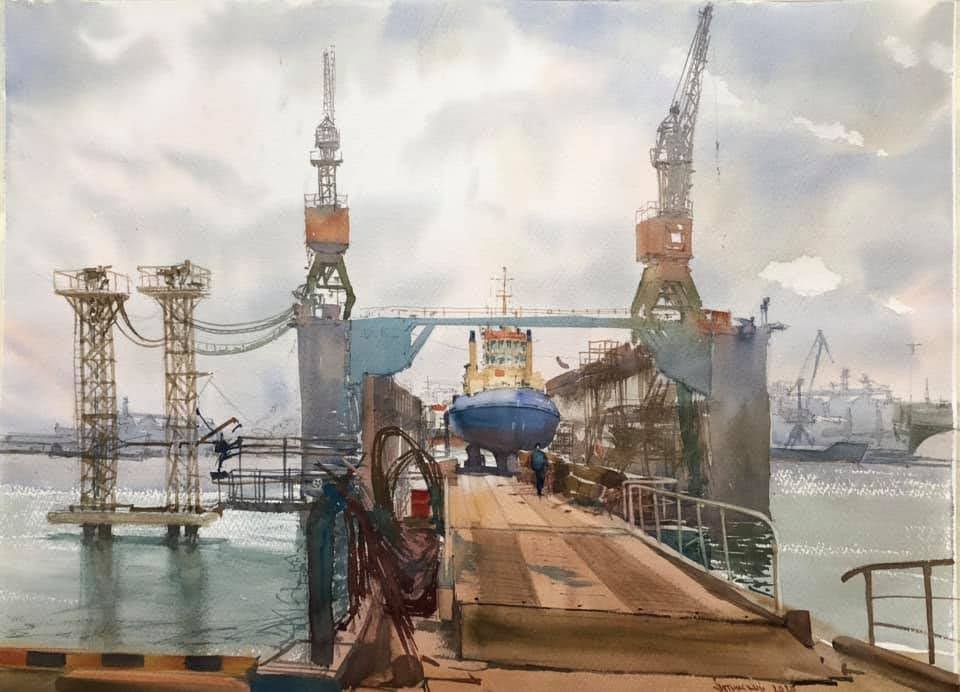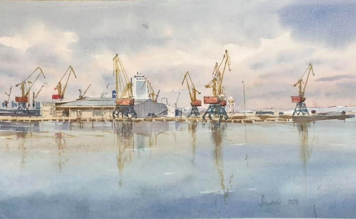 Одесский художник-аквалерист Игорь Летинский создал серию картин про Одесский порт.