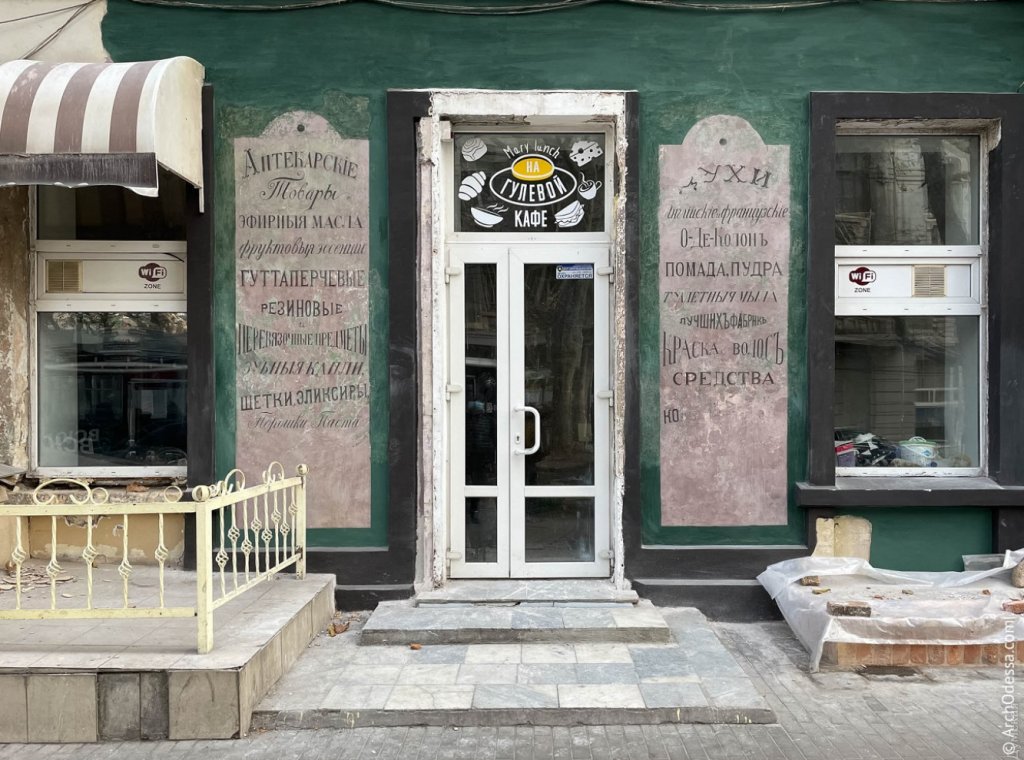 «Возьми кофе и угости реставратора». Собственно вывесками занимаются каллиграфы из проекта «Буквы в городе». Реставрацию планируют возобновить с наступлением благоприятной погоды.