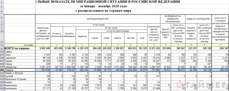 409 549 человек сменили украинское гражданство на российское в 2020 году. Об этом свидетельствуют данные МВД РФ, а именно показатели миграционной ситуации в Российской Федерации за январь — декабрь 2020 года с распределением по странам и регионам. На миграционный учёт в РФ встали 791 618 украинцев, а вид на жительство получили 36 790.