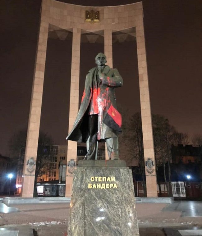 «Сегодня, 5 февраля, в 02:20 в полицию поступило сообщение о том, что неизвестные лица облили краской памятник Степану Бандере на площади Кропивницкого во Львове. На месте происшествия работала следственно-оперативная группа, а также сотрудники других служб и подразделений полиции Львовщины», — рассказали правоохранители.