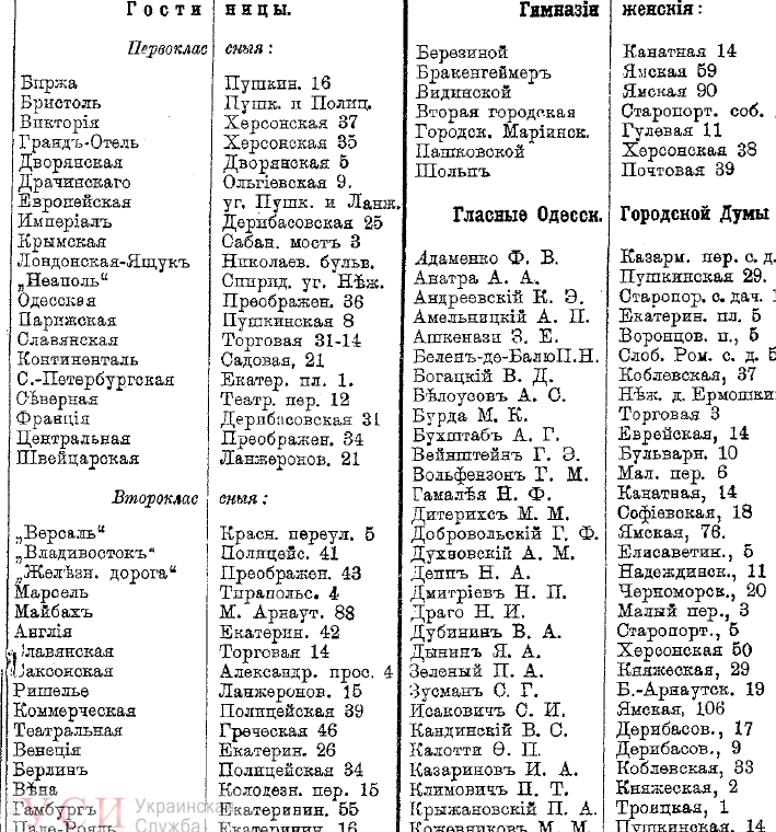 "Центральная" (гостиница существует до сих пор, и является одной из старейших, – она была открыта в конце 1880-х гг.) привлекала "общедоступными завтраками по цене 50 копеек" и наличием при гостинице казино. А располагавшаяся на удалении всего двух кварталов гостиница "Версаль" (ул. Греческая, 42) заманивала "теплыми ваннами, внимательной прислугой и вегетарианскими обедами". Сейчас в этом здании, где останавливался Иван Франко, расположено Приморское отделение полиции.