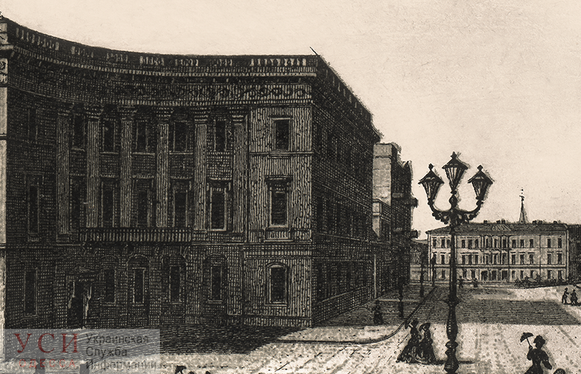 В 1830-1860-х гг. одной из самых популярных гостиниц в Одессе была "Петербургская". Она занимала одно из полуциркульных зданий на Приморском бульваре. Упоминание о гостинице мы можем найти на страницах одесской газеты "Одесский вестник".