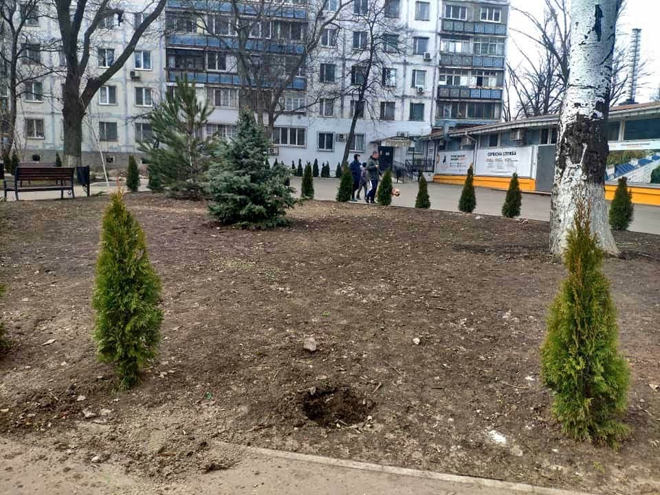 Местные жители заметили, что деревья начали пропадать. Неизвестный по ночам выкапывал по несколько штук и, видимо, где-то продавал по дешевке. Как сообщил экоактивист Юрий Дьяченко, когда выкопали с десяток деревьев, местные жители устроили облаву и ночью задержали злоумышленника-маргинала.